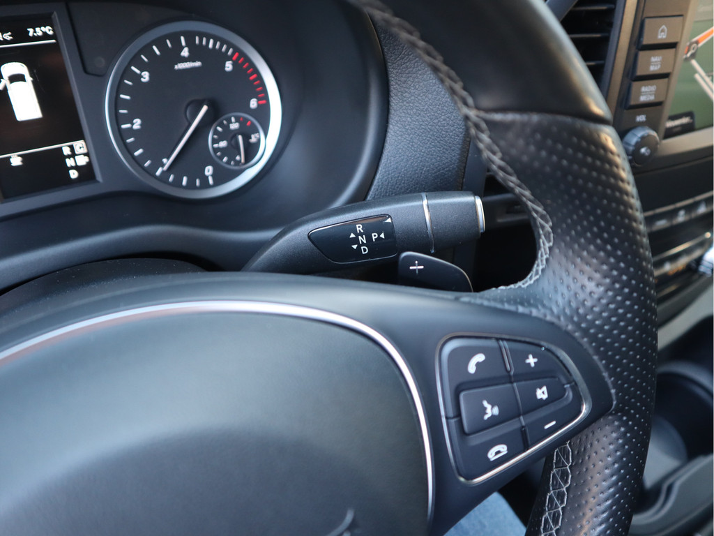 Zodra u naar de 'R' schakelt, gaat de achteruitrijcamera in werking en heeft u een perfect zicht op alles wat zich achter de auto afspeelt. Adaptive cruise control houdt de ingestelde snelheid vast en houdt automatisch afstand tot uw voorligger. Het audio-installatiesysteem en het navigatiesysteem bedient u veilig met knoppen op het stuur. Met de automatische airconditioning selecteert u de gewenste temperatuur. Het systeem doet de rest. Achter het stuur van deze Mercedes-Benz bent u niet alleen. De auto kijkt als het ware met u mee tijdens de rit. De regensensor schakelt de ruitenwissers in als het nodig is en de automatisch inschakelbare verlichting doet de lichten voor u aan. En deze auto heeft ook sportstuur met schakelpaddels en centrale deurvergrendeling met afstandsbediening als standaard uitrusting.