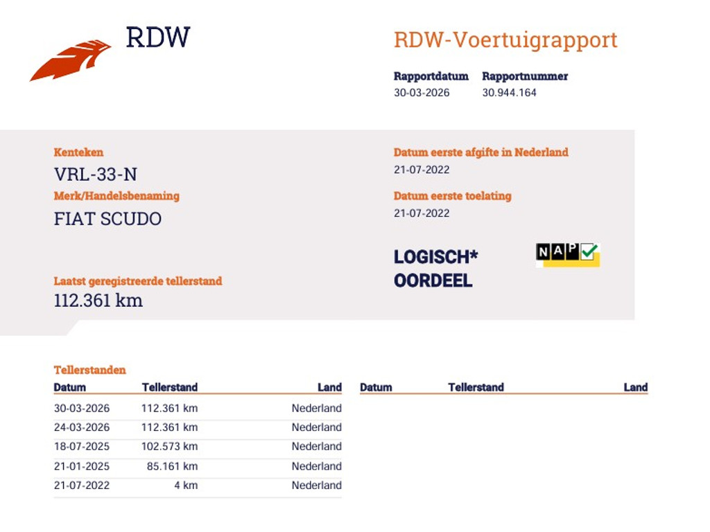 Dat de kilometerstand van deze auto klopt, blijkt uit het tellerrapport van Nationale Autopas. Bel nu voor een afspraak en overtuig uzelf.